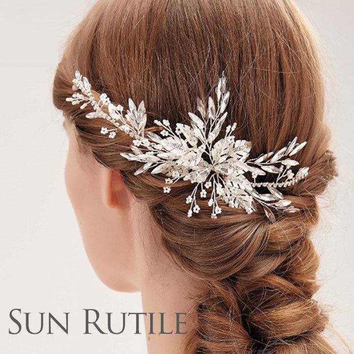 ヘッドアクセサリー ヘッドドレス ウェディング 花 フラワー リーフ シルバー ブライダル ヘッドピース 結婚式 花嫁 髪飾り ヘアアクセサリー Sunrutile 02 ブライダルヘッドピース ブライダル ウェディング